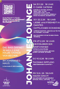 Zu dieser Veranstaltungsreihe lade ich Künstler*innen ein, die mit der Region Heidelberg/Metropolregion Rhein-Neckar verbunden sind. Das neue Programm erscheint im Sommer 2025.